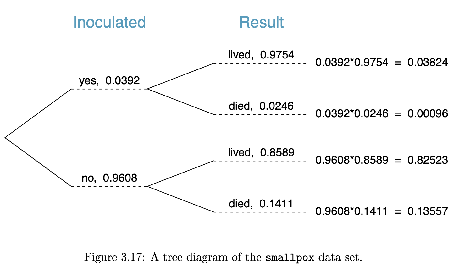 Similarly, if there are \(k\) events \(A_1, \ldots, A_k\) from \(k\) independent processes, then the probability they all occur is