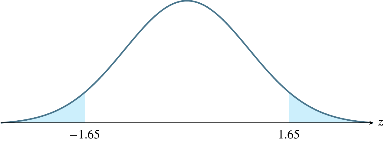 (e) \(\alpha=0.10\), a two-tailed rejection region