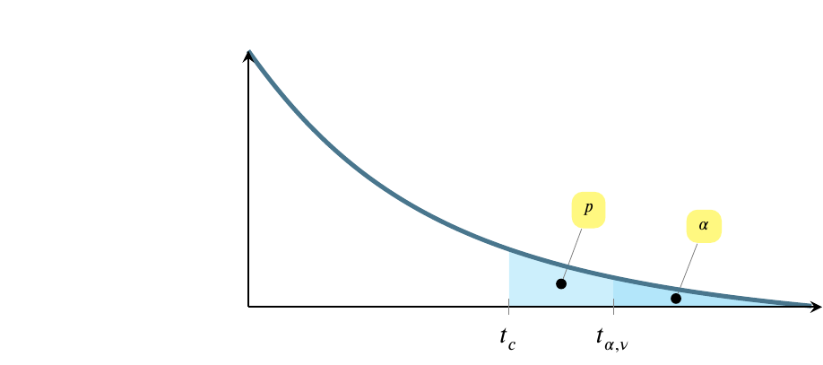 The preceding possibility shows the situation where \(t_{\alpha,\nu}>t_c\), which is equivalent to saying that \(p>\alpha\).