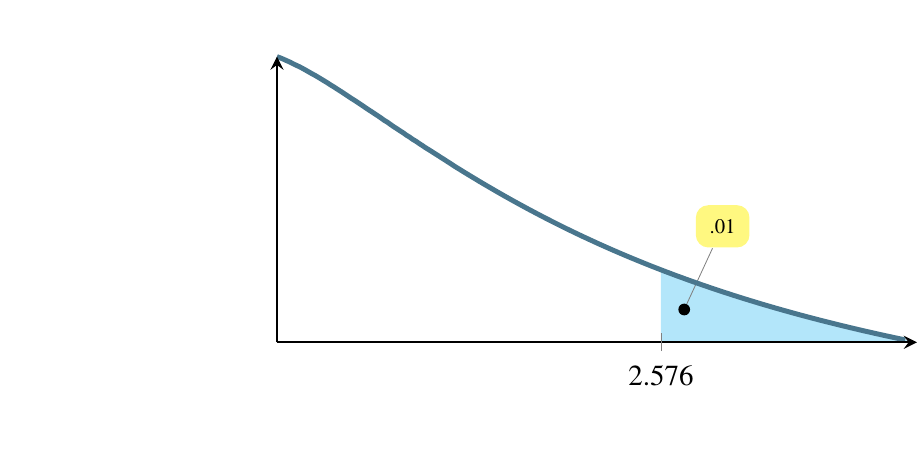 (c) \(\alpha=0.005\), a one-tailed rejection region