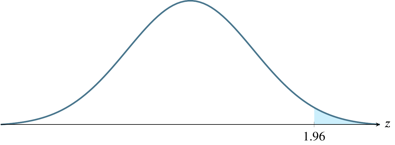 | \(1-\alpha\) | \(\alpha\) | \(\alpha/2\) | \(z_{\alpha/2}\) |