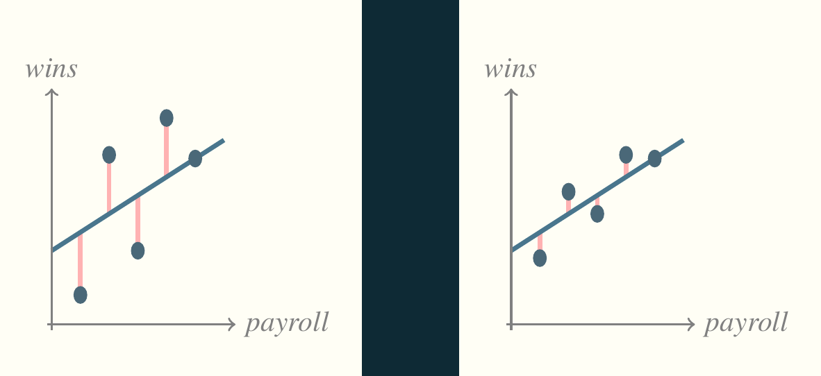 Think back to the first picture (reproduced below). The residuals are the key to assessing the model.